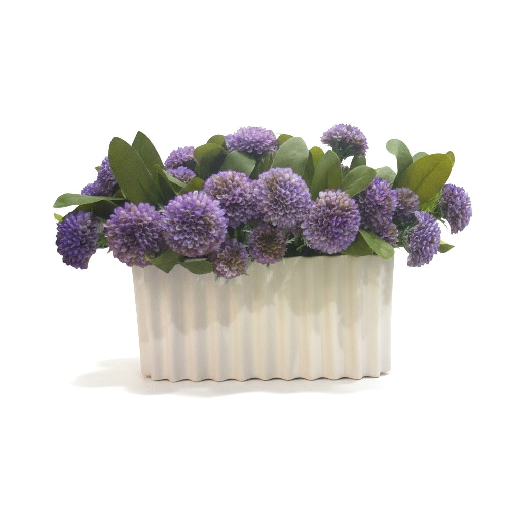 Lavender Thistle Burst in Wavy Ceramic Pot