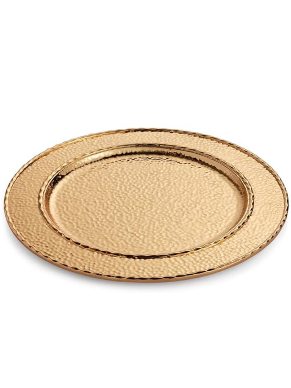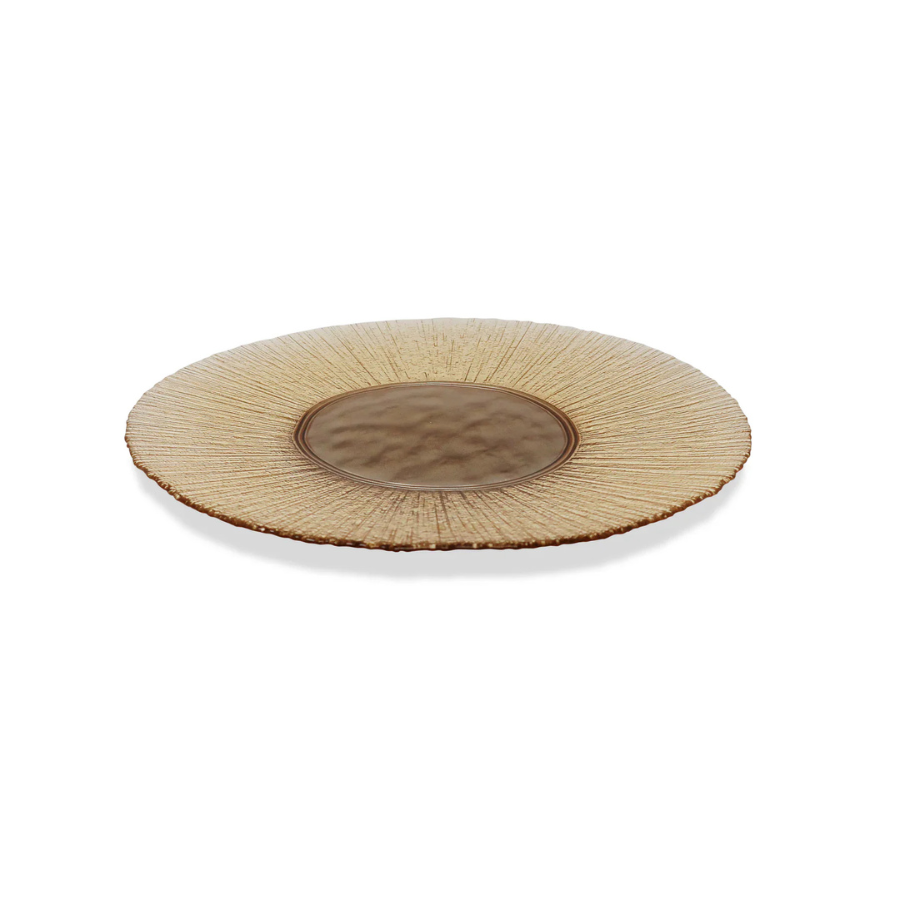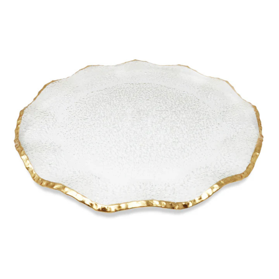 Set of 4 Crushed Glass Chargers with Gold Trim