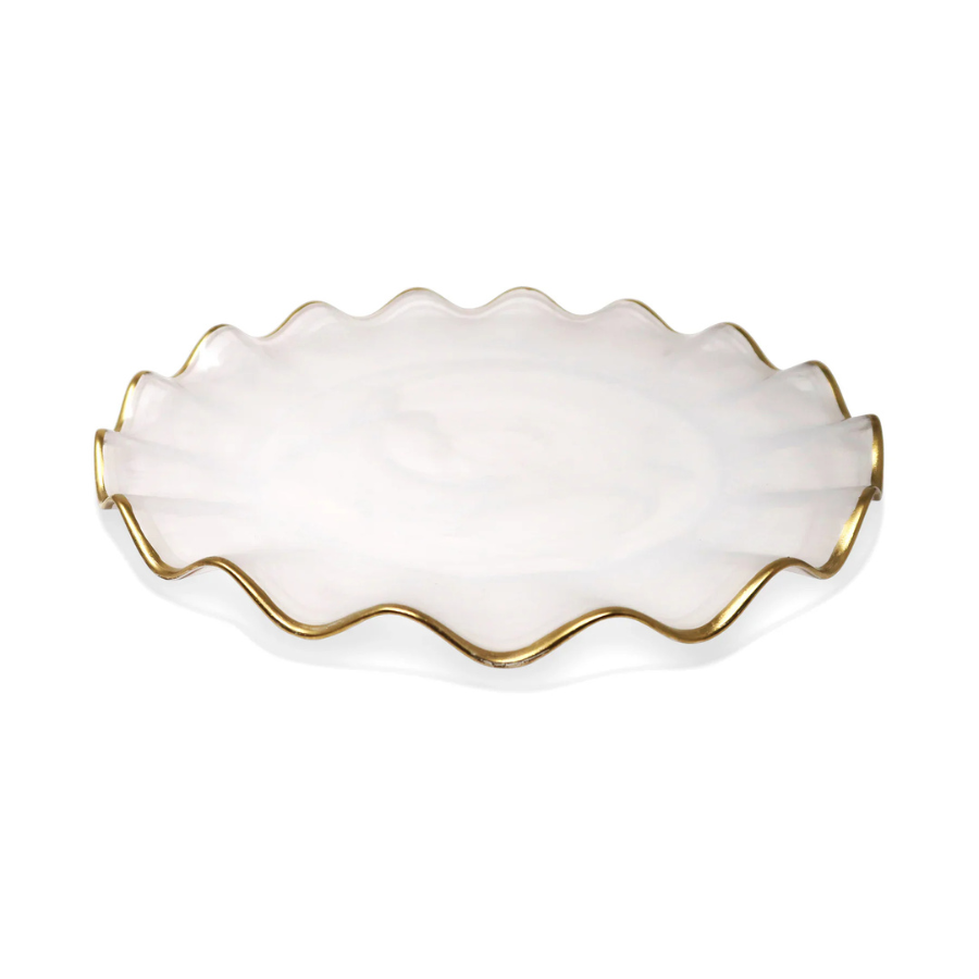 Set of 4 White Alabaster Plates with Gold Ruffled Border- Charger