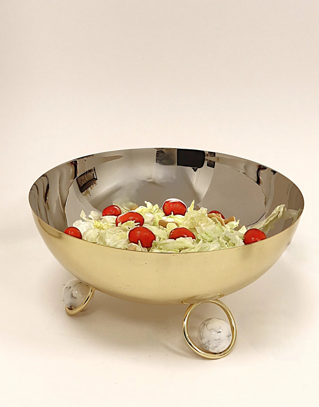 Large Salad Bowl Silver Inner Gold Outer with Ball Legs - Marble Balls