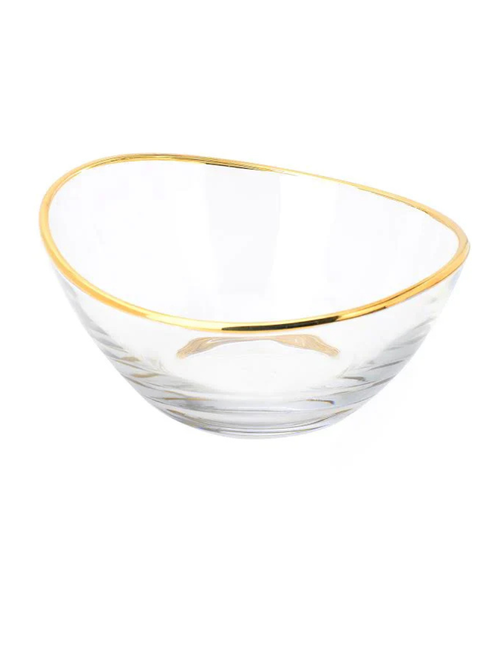 Set of 4 Glass Square Dessert Bowl with Gold Trim