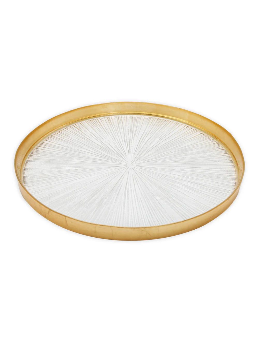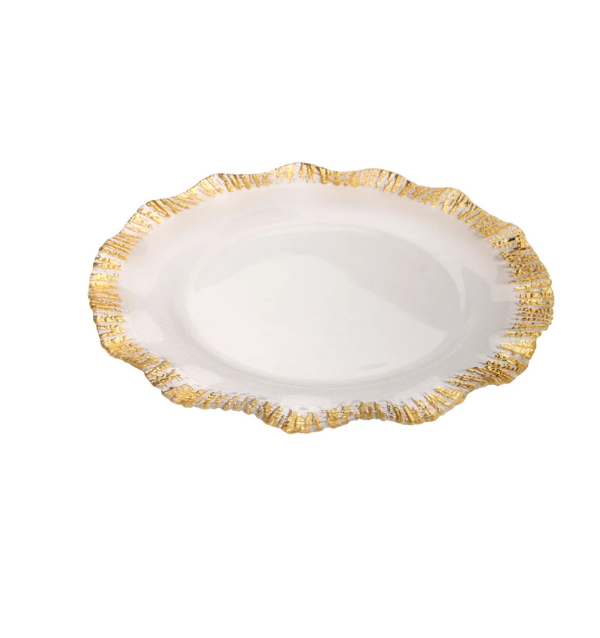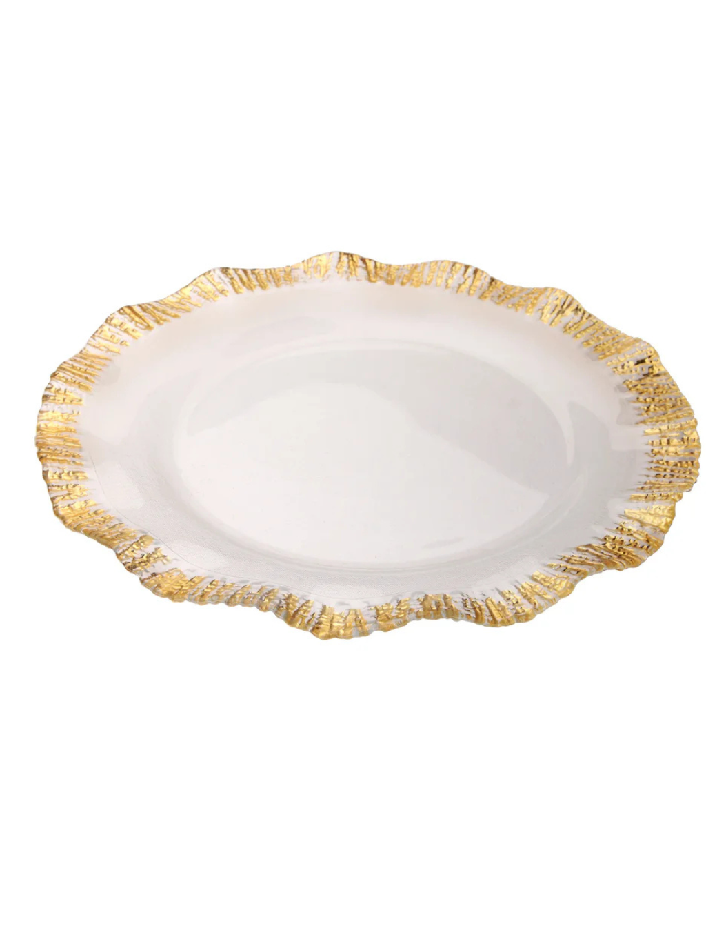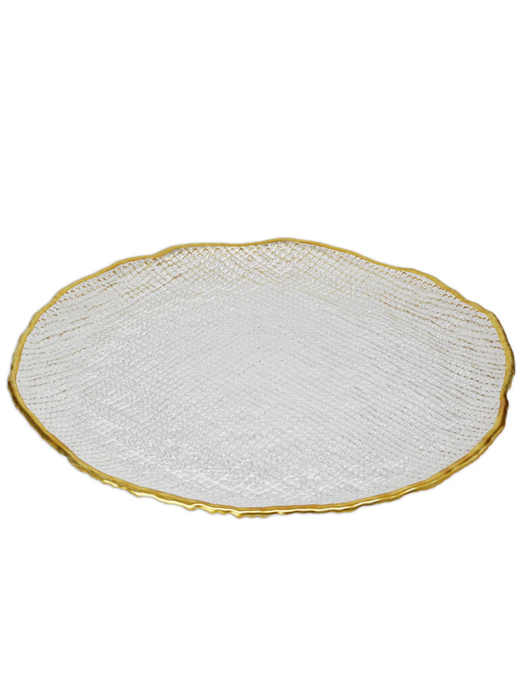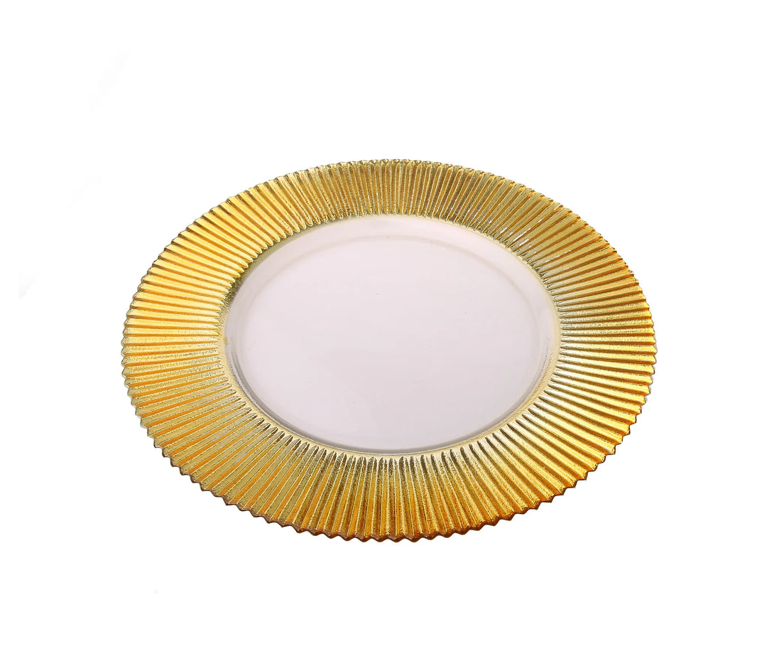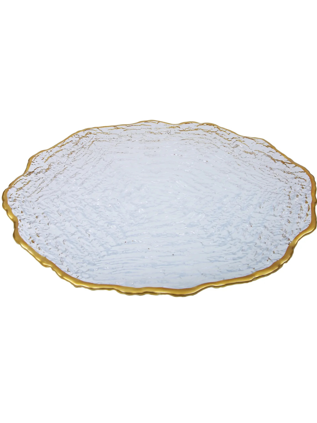 Set of 4 Crushed Glass Chargers with Gold Trim