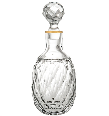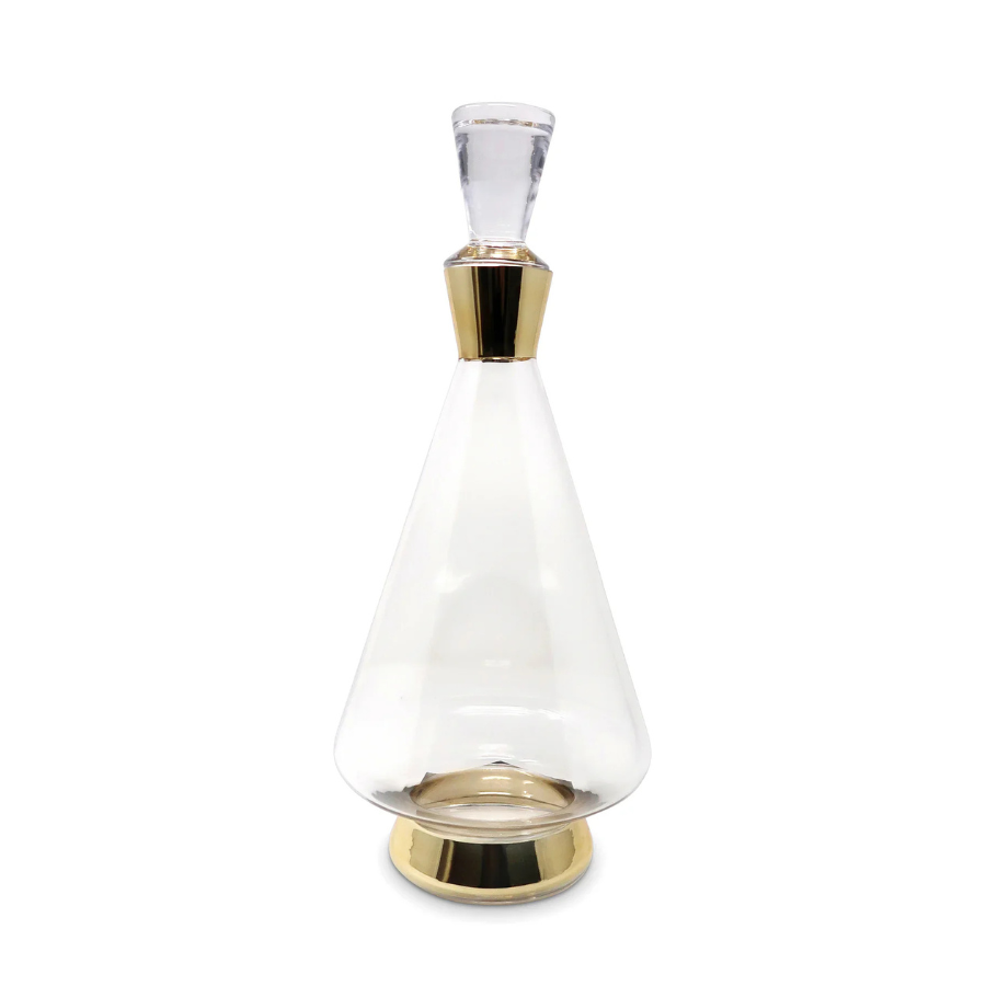 Glass Diamond Shaped Decanter with Gold Reflection and Lid