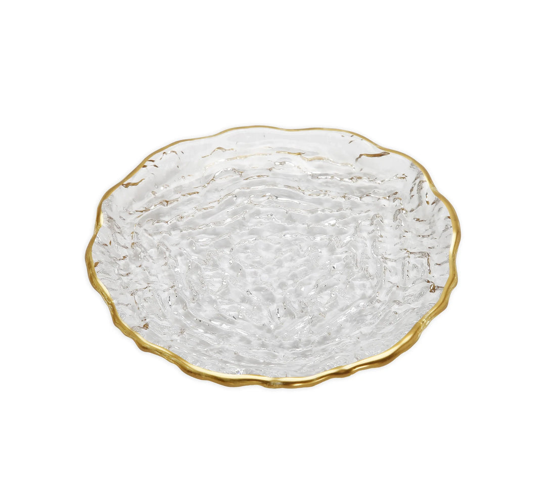 Set of 4 Crystal Glass Salad Plates with Gold Border