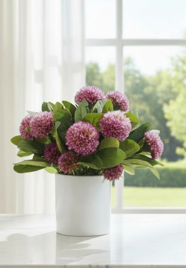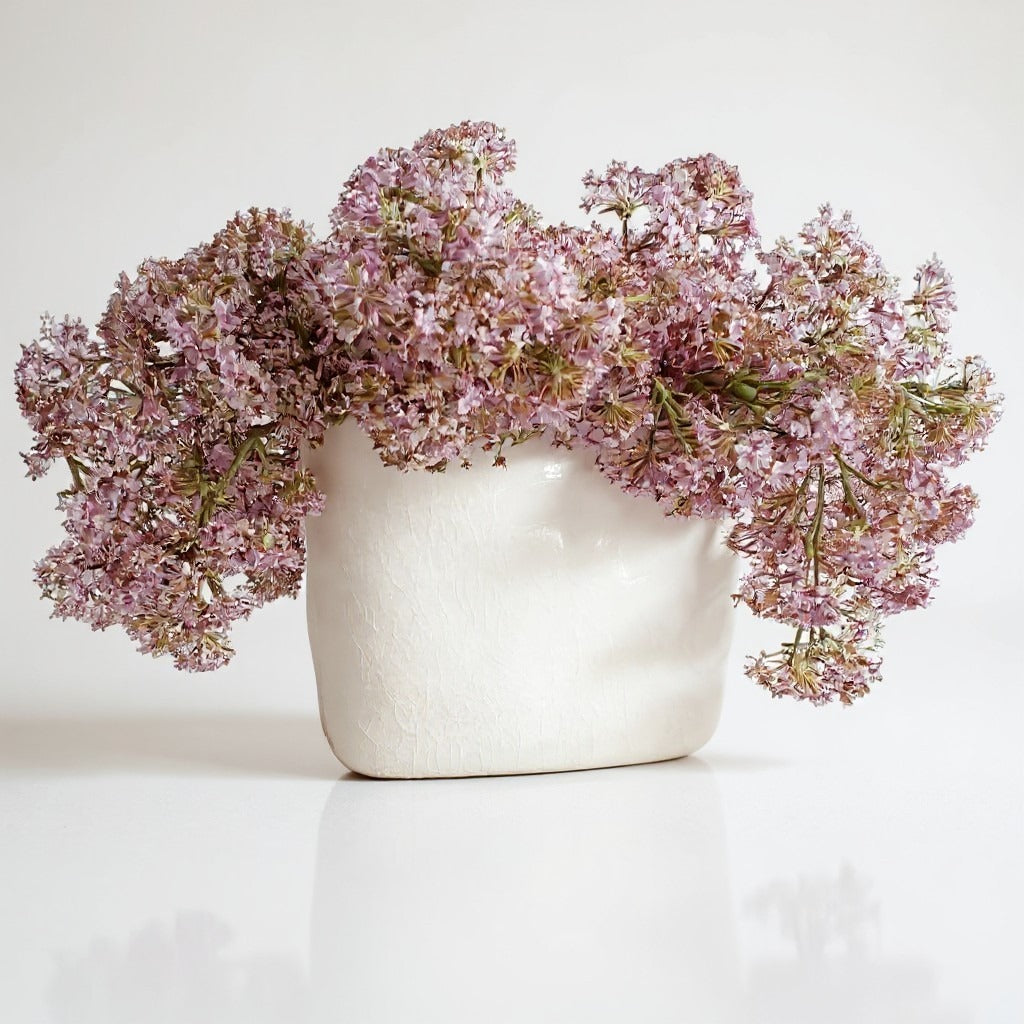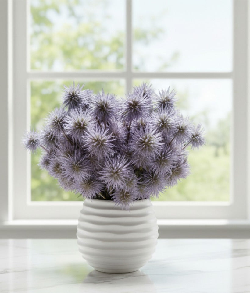 Lavender Thistle Burst in Wavy Ceramic Pot