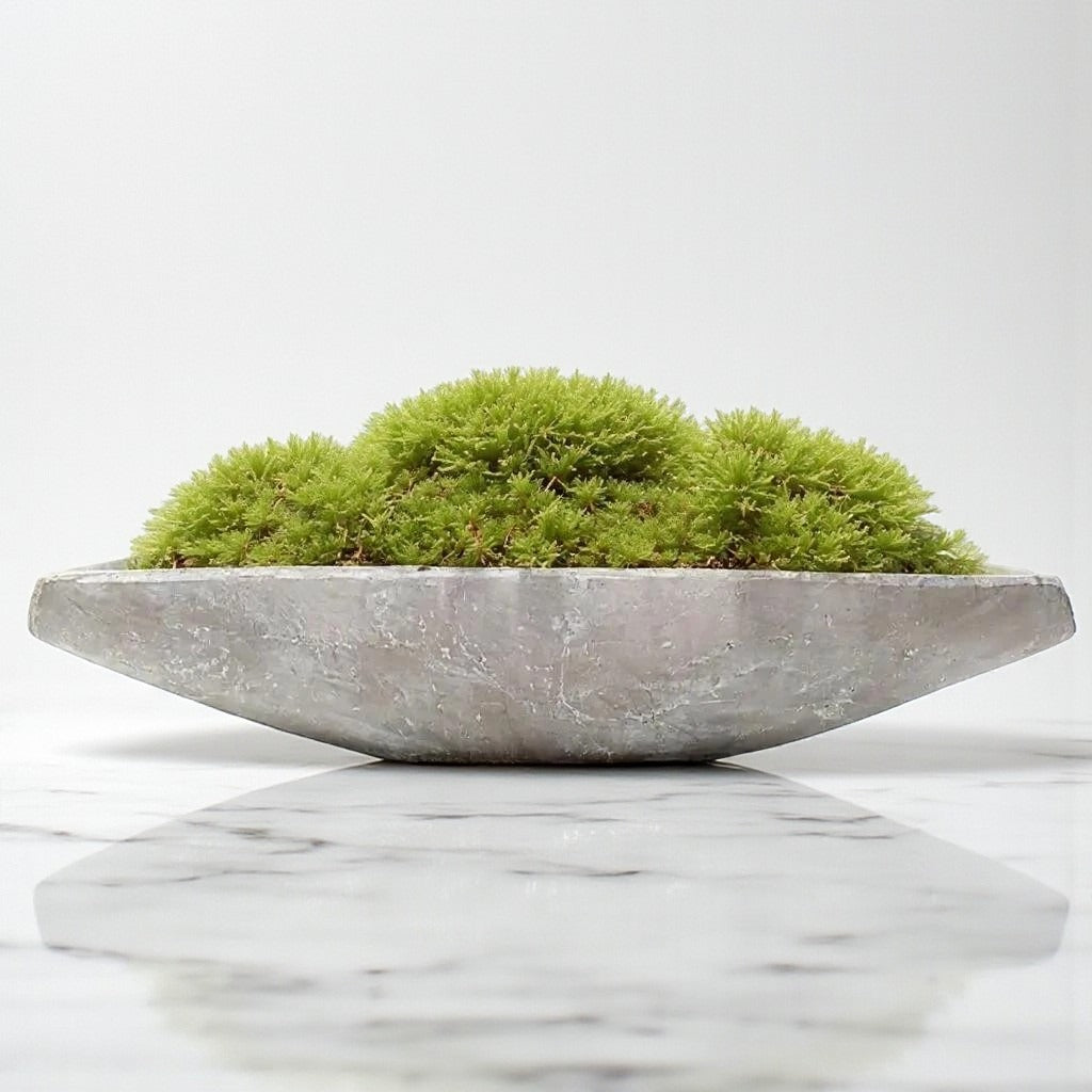 Light Green Moss Dome in Stone Boat Bowl
