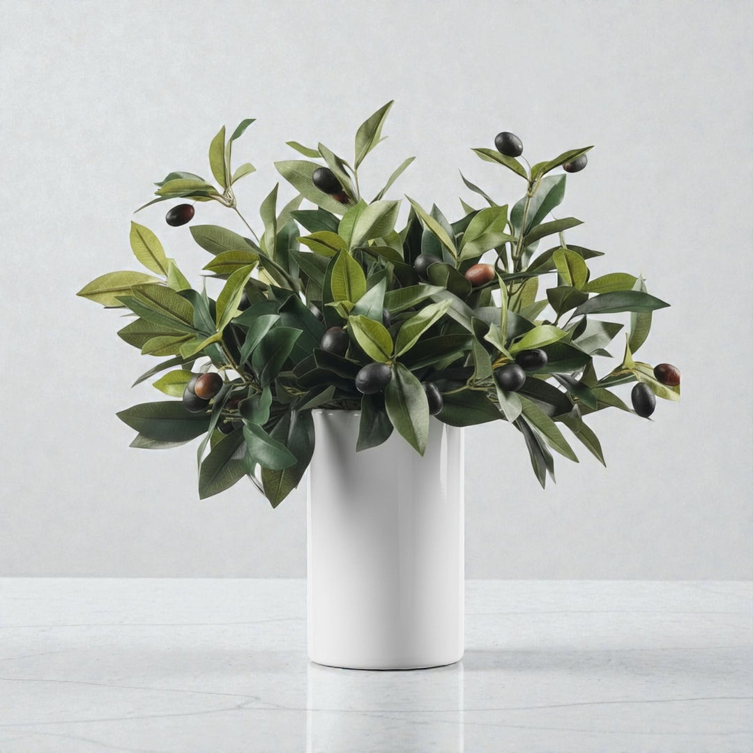 Olive Branch Arrangement in Glossy Cylinder