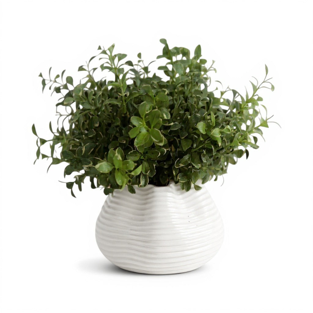 Greenery in Gathered White Sculpted Vase