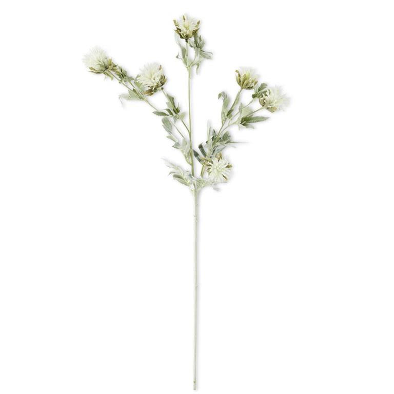 33 Inch 6 Head White Thistle w/Soft Green Foliage Stem
