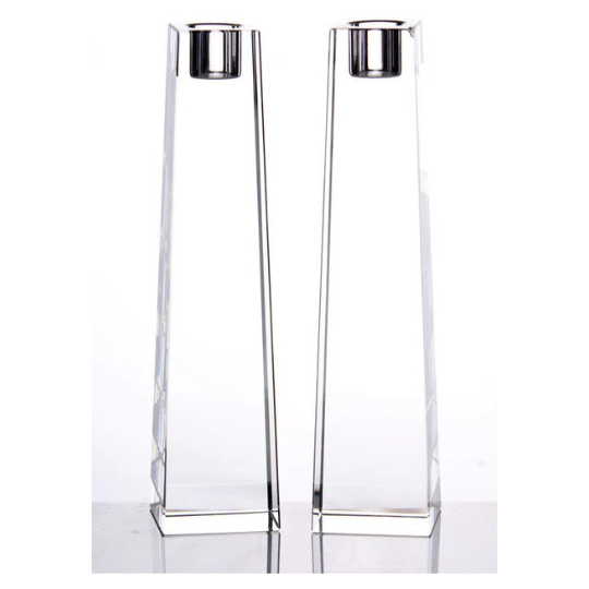 Obelisk Clear Crystal Candlesticks - Set of 2