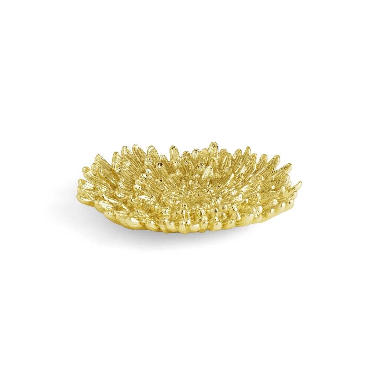 The Dahlia Catch All is handcrafted with radiant 24K gold petals set against black granite and enameled stainless steel, blending sensuality and refinement.