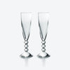 The Vega Clear crystal champagne flute is sleek and modern. The geometric stem, three diabolo shapes stacked together, is an eye-catching geometric zigzag. The angularity of the lower half is artfully juxtaposed with the tall smoothness of the prolonged columnar bowl. The unique bevel cut stem, designed for Baccarat by Savinel & Rozé, makes sipping bubbly all the more exceptional. The champagne flutes come in a set of two. The Vega collection also includes the Vega Flutissimo, which is a slight variation on this Vega champagne flute, in addition to the Vega martini glass and other bar and tableware.